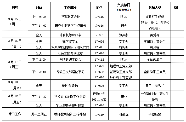 【每周安排】2020学年第二学期第3周主要工作活动周报