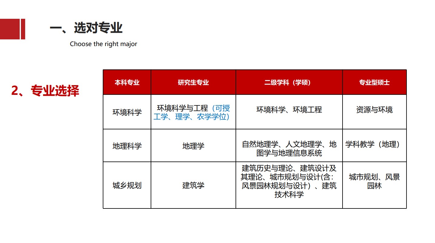 最后,高继英老师为同学们进行专业院校分析。专业、院校、地区是同学们在进行目标院校选择时需要考虑的因素,要在本专业与跨专业、学硕与专硕、科研院所与普通高校之间做好抉择。而地区的选择也会影响到未来就业的地点,经济中心城市与一线城市是较为理想的备选地点。