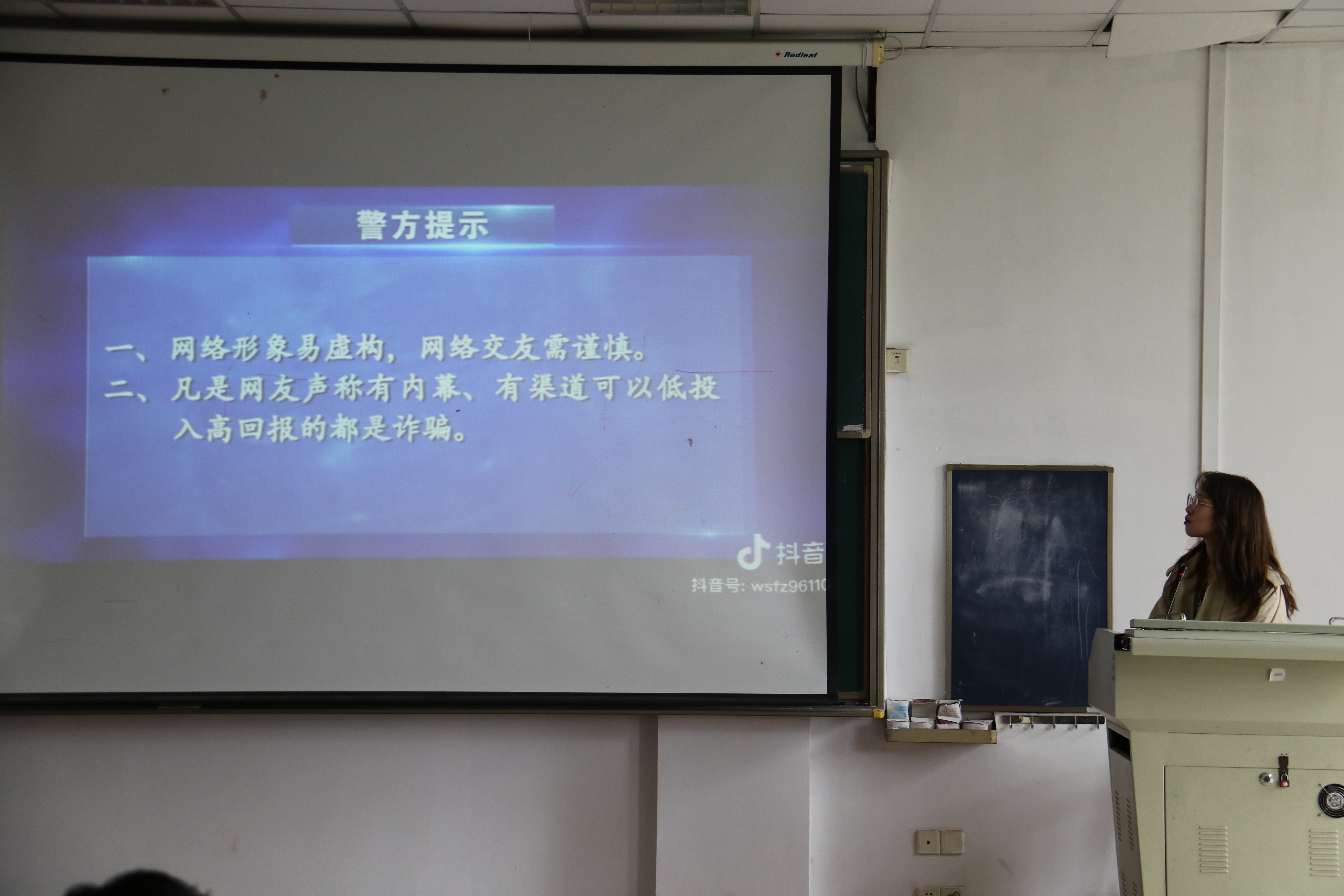 施璐老师通过列举一系列触目惊心的真实数据,向同学们展现各类诈骗案件的高发态势与个人财产损失的严重性。她以一些在我校真实发生过的诈骗案为例,提醒同学们要时刻保持警惕,守住法律底线。此外,她还提醒同学们牢记我校保卫处联系方式82291110,若有困惑,应及时咨询,寻求帮助。