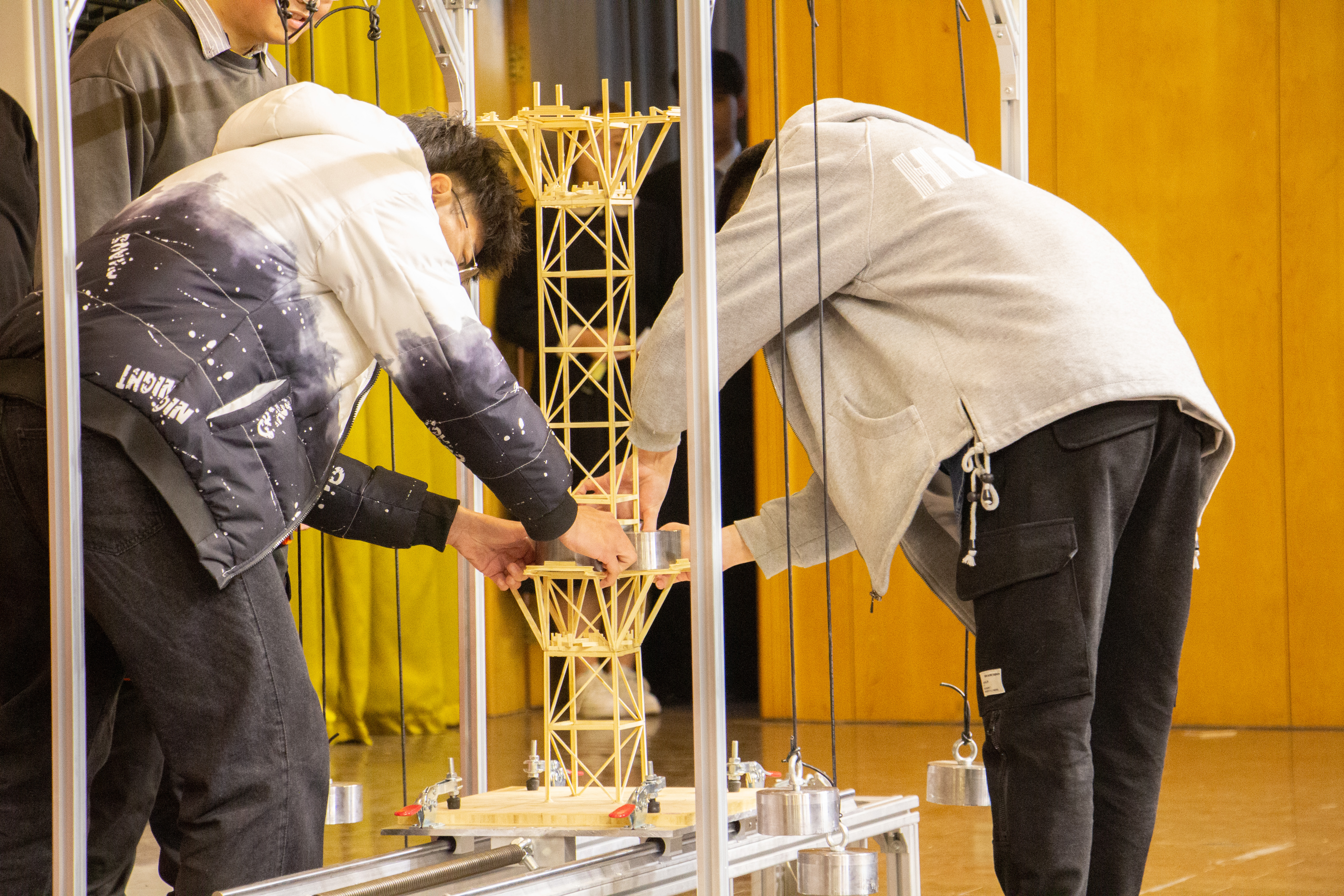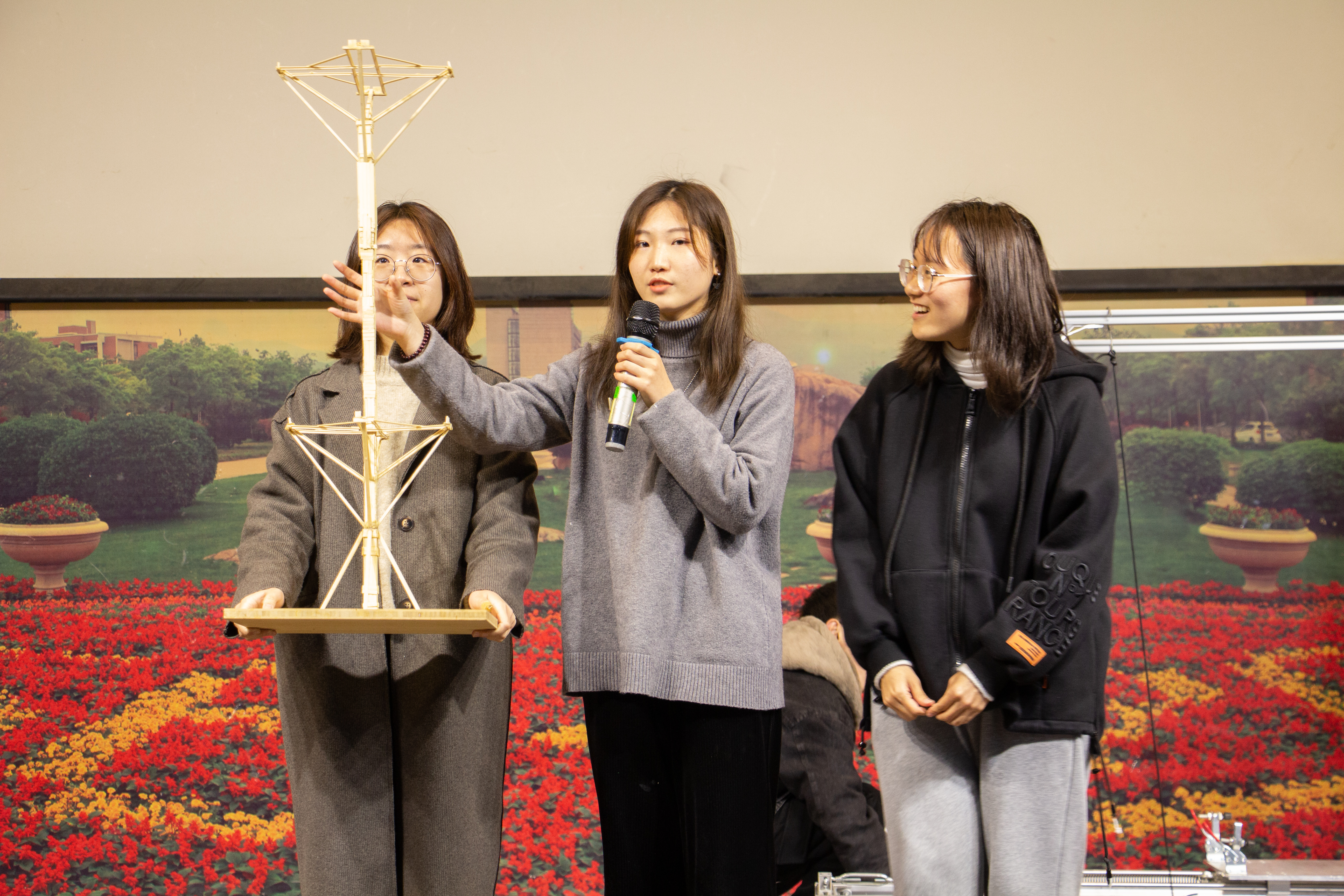 时间仓促、意见分歧、被胶水粘住、材料不断打磨的耗时……参赛队员的艰辛和汗水都凝聚在模型之中。虽然多数模型终归轰然倒塌,但正如陈志文老师所说,“成功有成功的喜悦,失败也自有失败的收获”,纵使砝码将模型撕成碎片,但实践创新、团队协作的精神高塔早已牢固地矗立于心间。选手小赵感慨:“虽然有疲惫,虽然有辛苦,但重要的是实践带来的成长、合作带来的喜悦。”