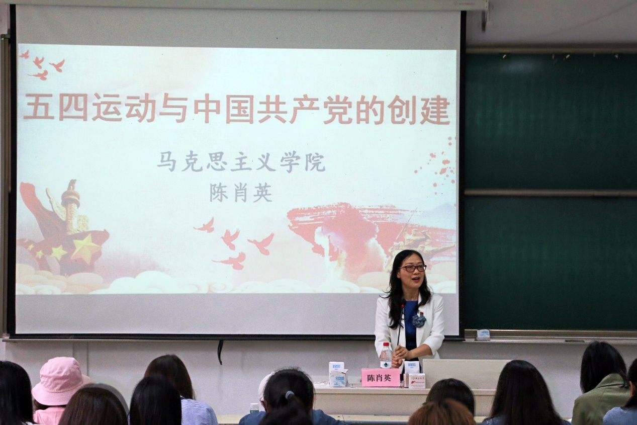 5月19日下午,马克思主义学院陈肖英副教授围绕“五四运动与中国共产党成立的关系”开展“同上一堂党史课”主题宣讲,给我院师生党员讲授了一堂生动的党史课,从多个维度分析青年人在中国共产党成立之际所作的贡献,以鼓励当代青年人“不忘初心、牢记使命”继续肩负起党的巨大使命。