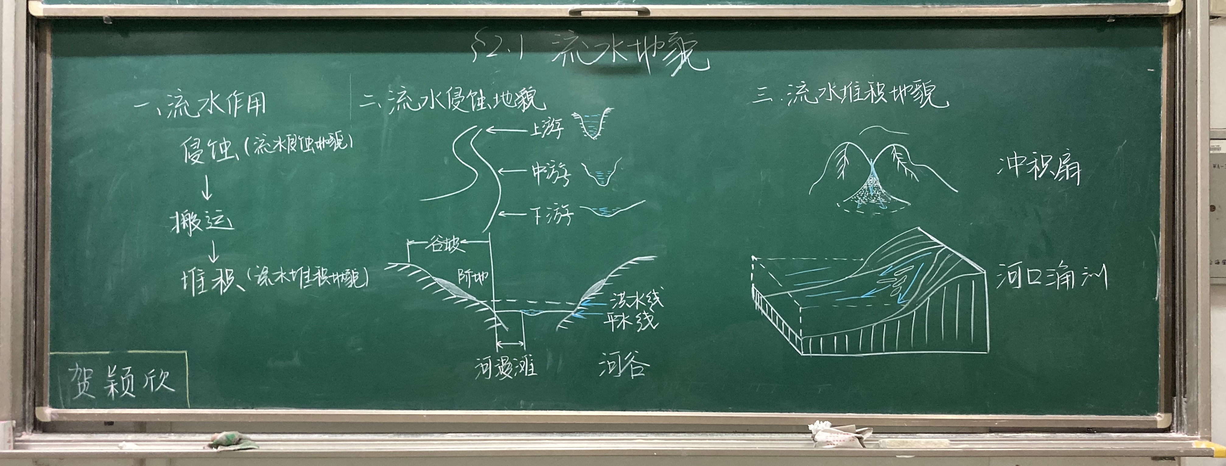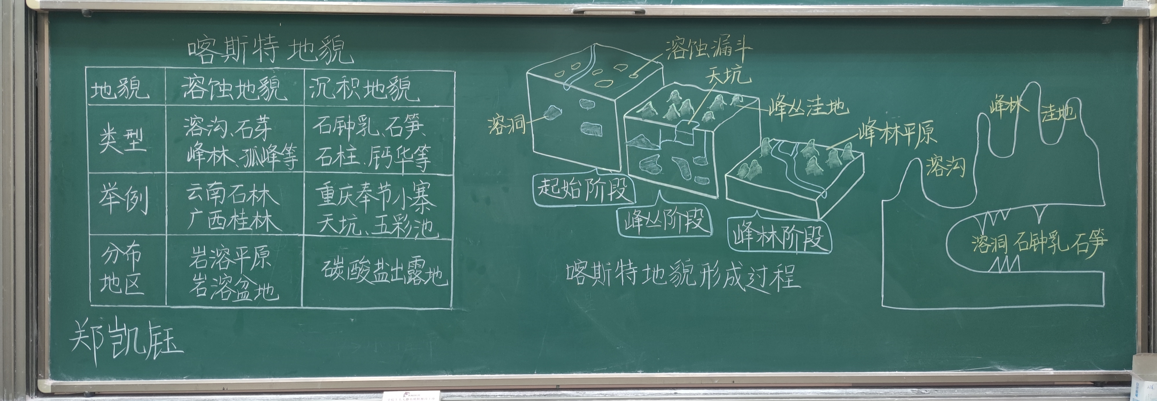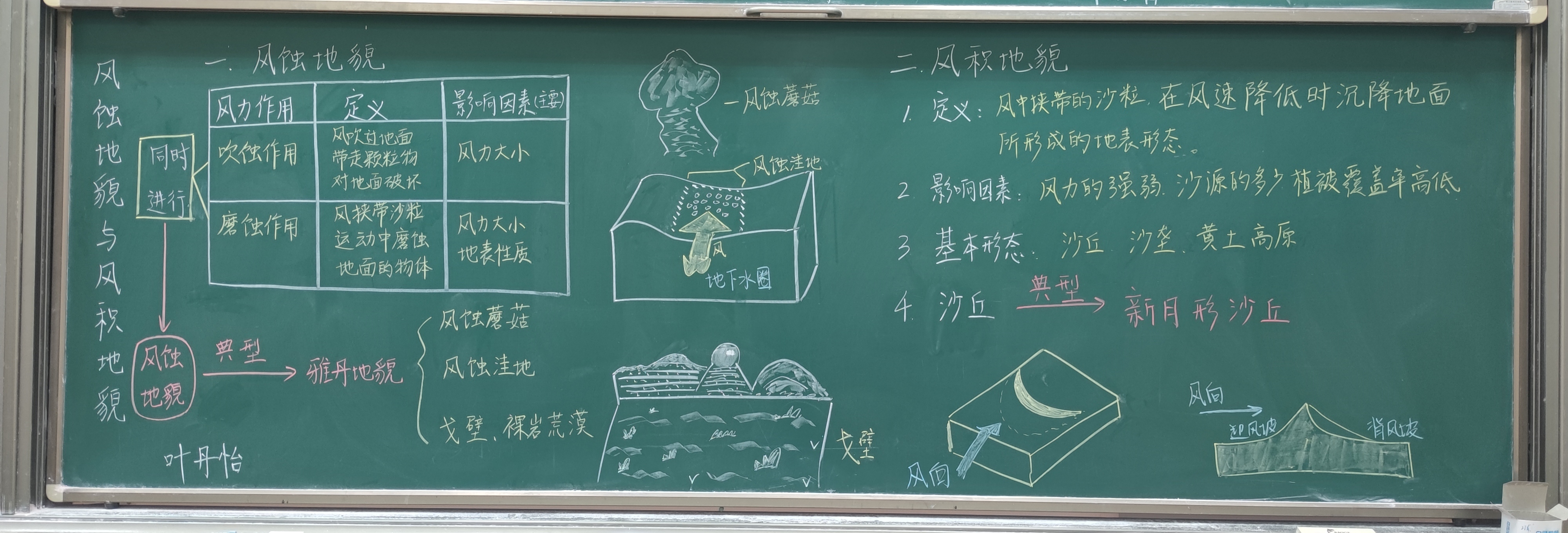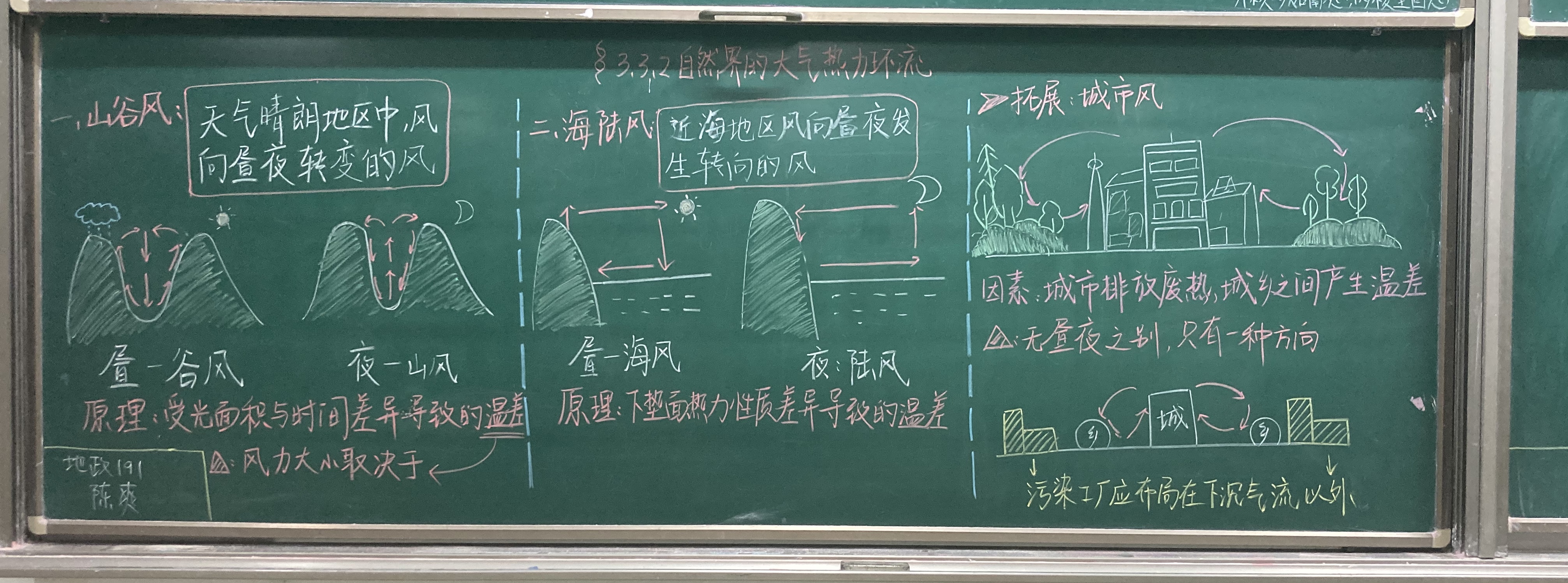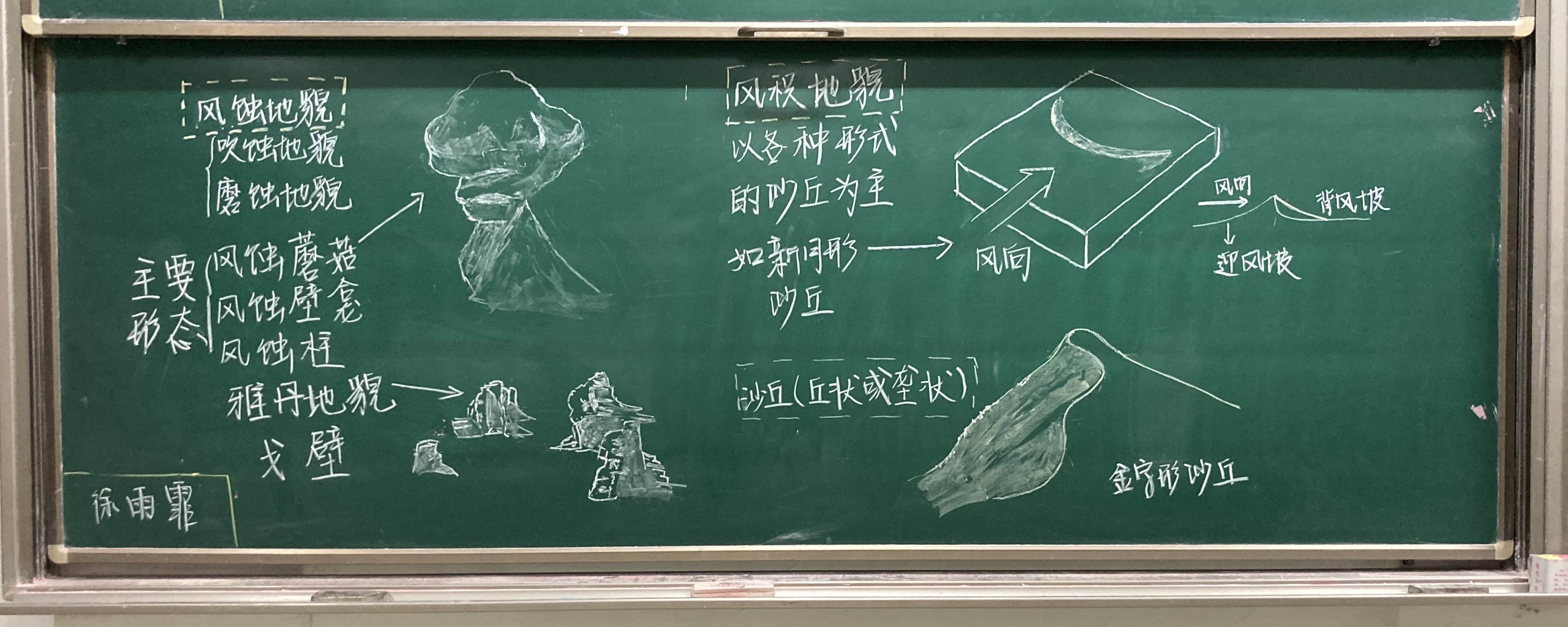 本次比赛共有33名选手参赛,18:00钟声敲响,比赛正式开始。每位参赛选手提前半小时抽取板书板画主题,在知晓比赛课本题目后选手们回到座位构思酝酿,不时翻阅地理必修一教材。凭借对教材内容与课标要求的熟稔把握和自身丰富的地理专业知识储备,未来地理教师们思绪纷飞,在准备的草稿纸上奋笔疾书。30分钟的准备时间转瞬即逝,选手们走上讲台,用一本教材,一只粉笔,用一笔一画,一撇一捺绘出自己的课堂。