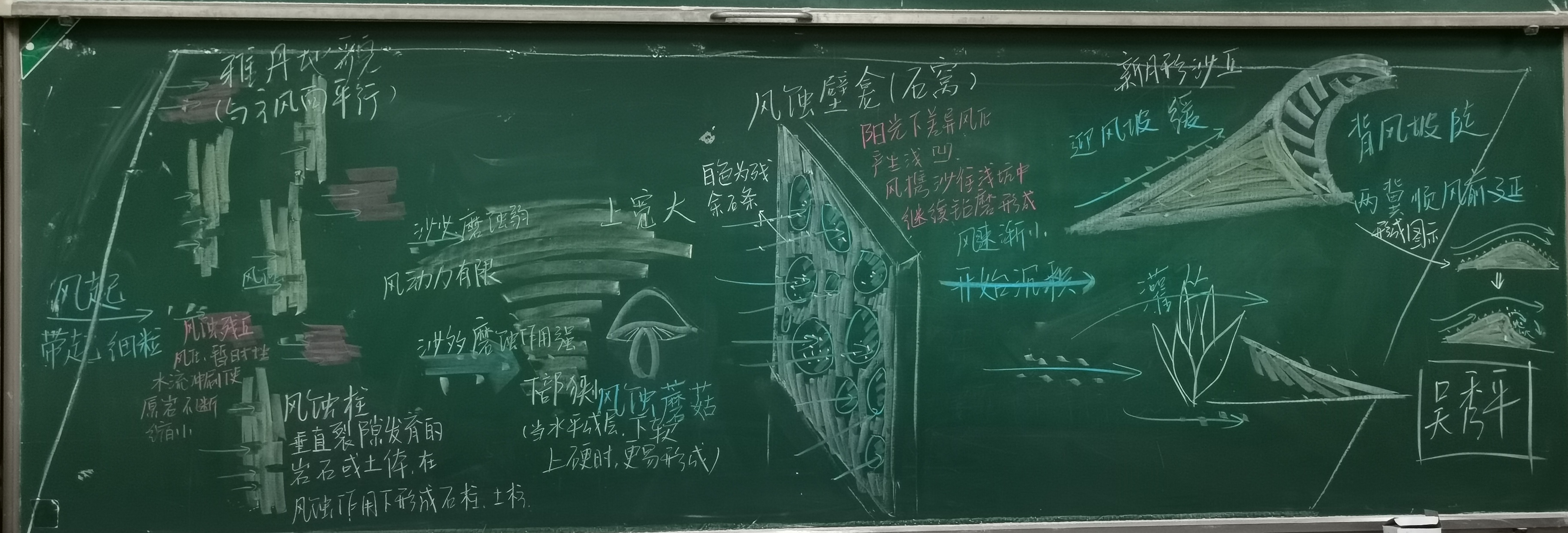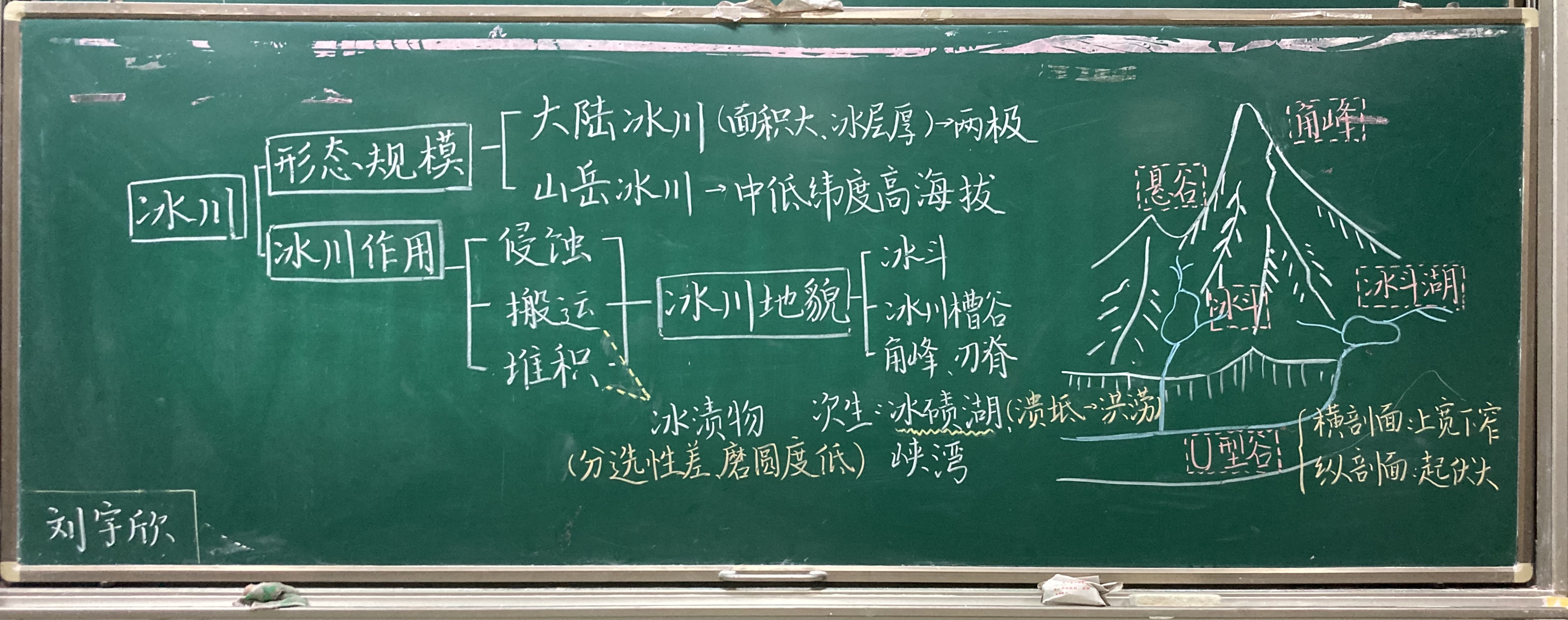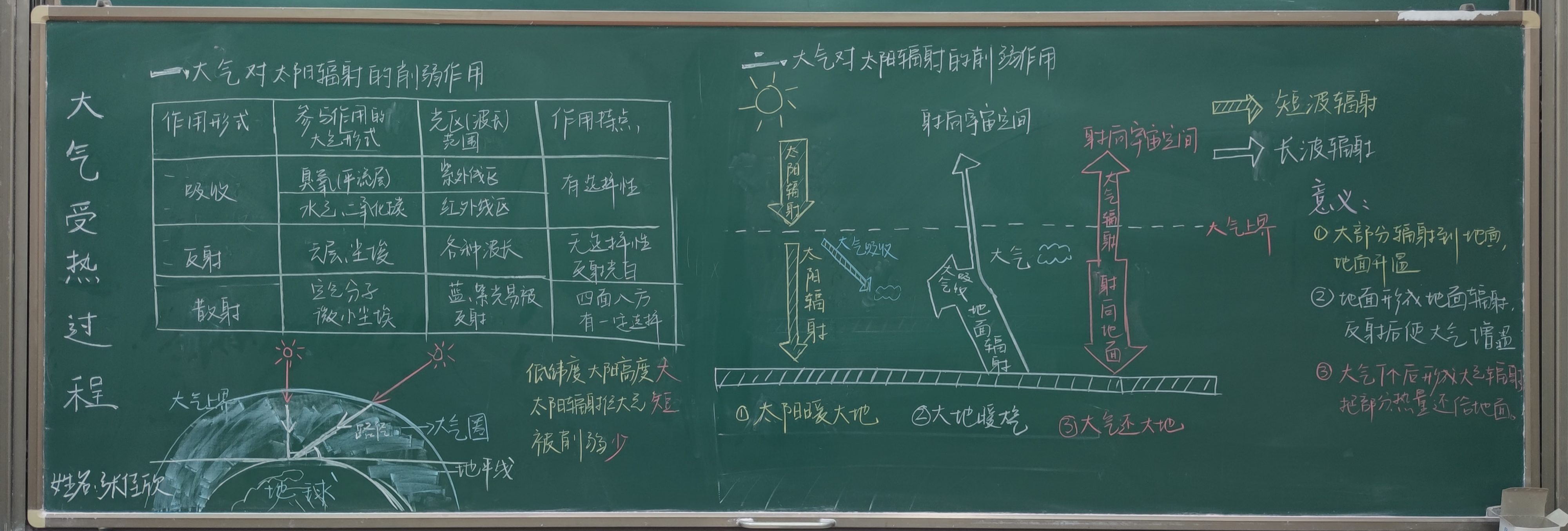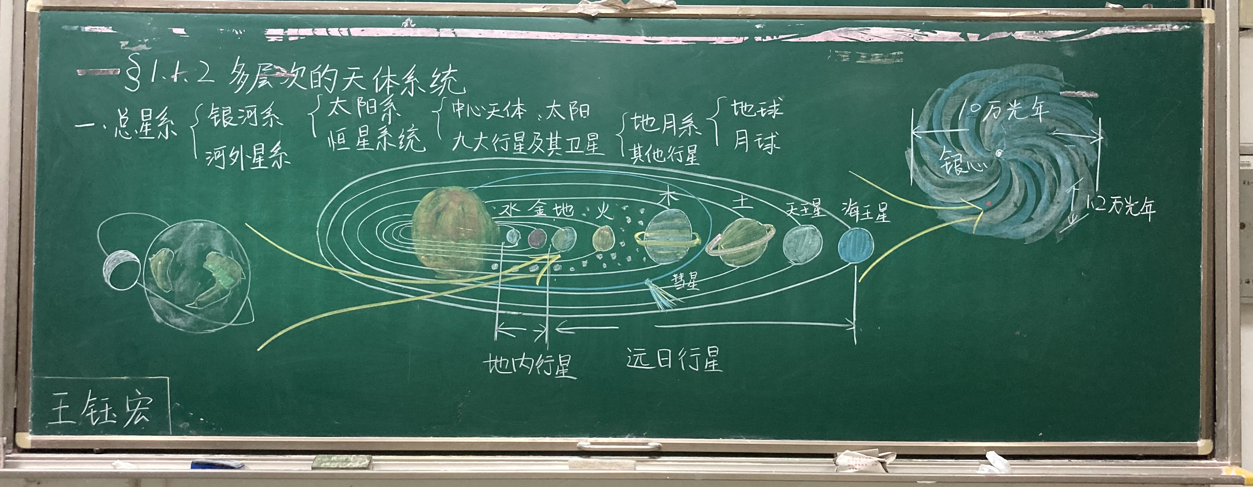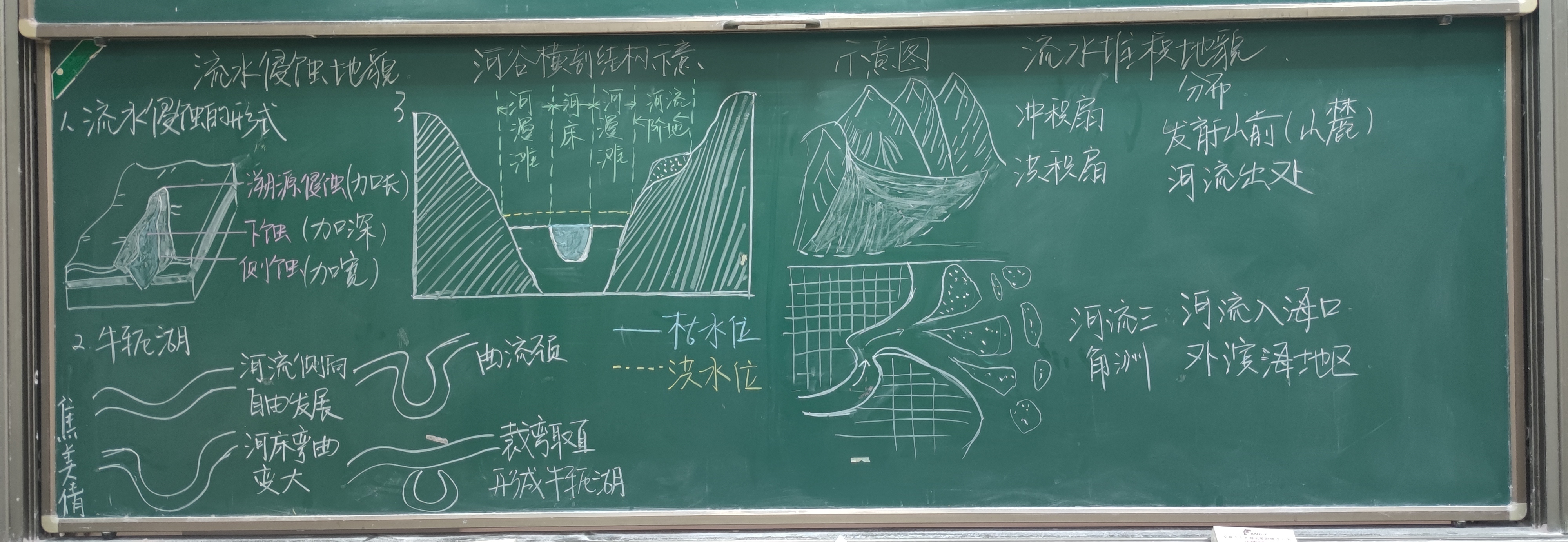 本次比赛共有33名选手参赛,18:00钟声敲响,比赛正式开始。每位参赛选手提前半小时抽取板书板画主题,在知晓比赛课本题目后选手们回到座位构思酝酿,不时翻阅地理必修一教材。凭借对教材内容与课标要求的熟稔把握和自身丰富的地理专业知识储备,未来地理教师们思绪纷飞,在准备的草稿纸上奋笔疾书。30分钟的准备时间转瞬即逝,选手们走上讲台,用一本教材,一只粉笔,用一笔一画,一撇一捺绘出自己的课堂。