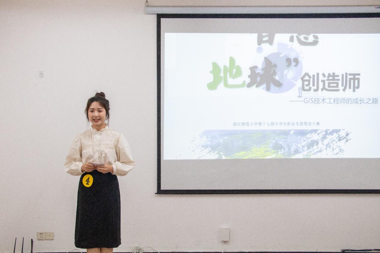 4号选手陈肖汀则立足于本专业领域进行职业生涯规划,梦想成为一名“智慧地球”创造师——GIS技术工程师。GIS,即地理信息系统。随着大数据时代的到来,不论是外卖、快递、导航,还是北斗航天、蛟龙潜海、东风洲际导弹,GIS不仅便利我们的生活,更为实现中华民族伟大复兴提供技术支持。这使陈肖汀对地理信息系统产生浓厚的兴趣。在咨询多位学者对于GIS人才的具体要求后,她总结得到自己的六大优势:专业知识扎实、基础软件操作熟练、学科创新意识较强、组织协作经验丰富、逻辑思辨能力突出以及心怀天下视野开阔。访谈我院李凤全教授及2009级校友吴勇学长后,她意识到作为一名GIS专业人才及未来的GIS技术工程师,她需要不断完备基础技能,提升综合素质,并时刻把握行业动向。“我想要投身大数据的浪潮,成为一名GIS技术工程师,以自身力量助力‘智慧中国’,一起创造更加美好的‘智慧地球’!”她坚定地说。