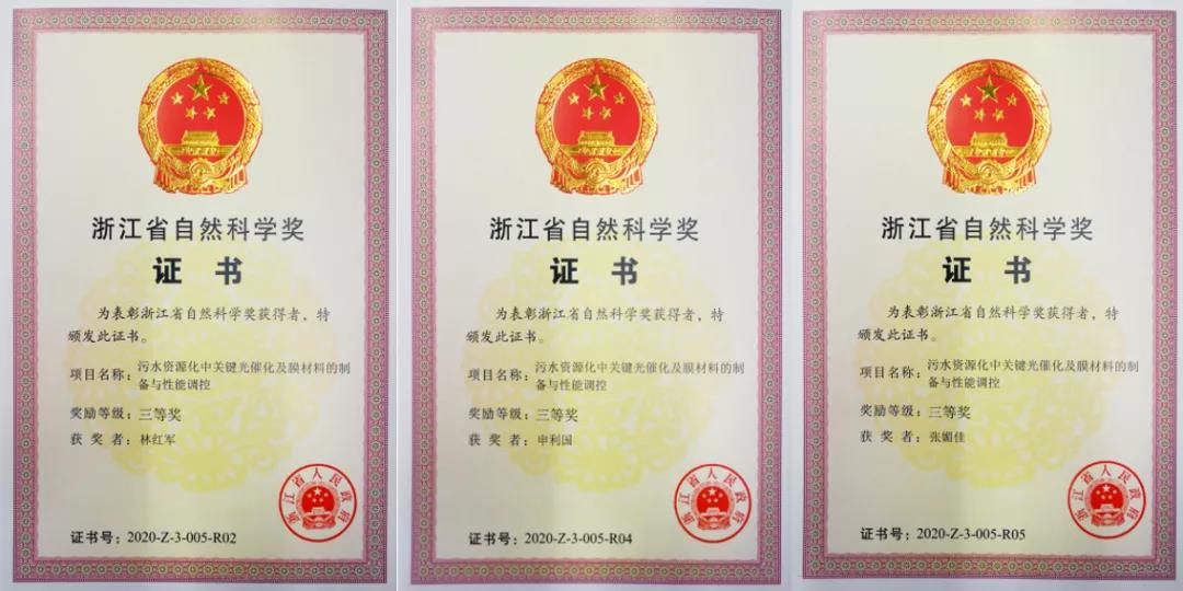 林红军、申利国、张媚佳等获浙江省自然科学奖三等奖。