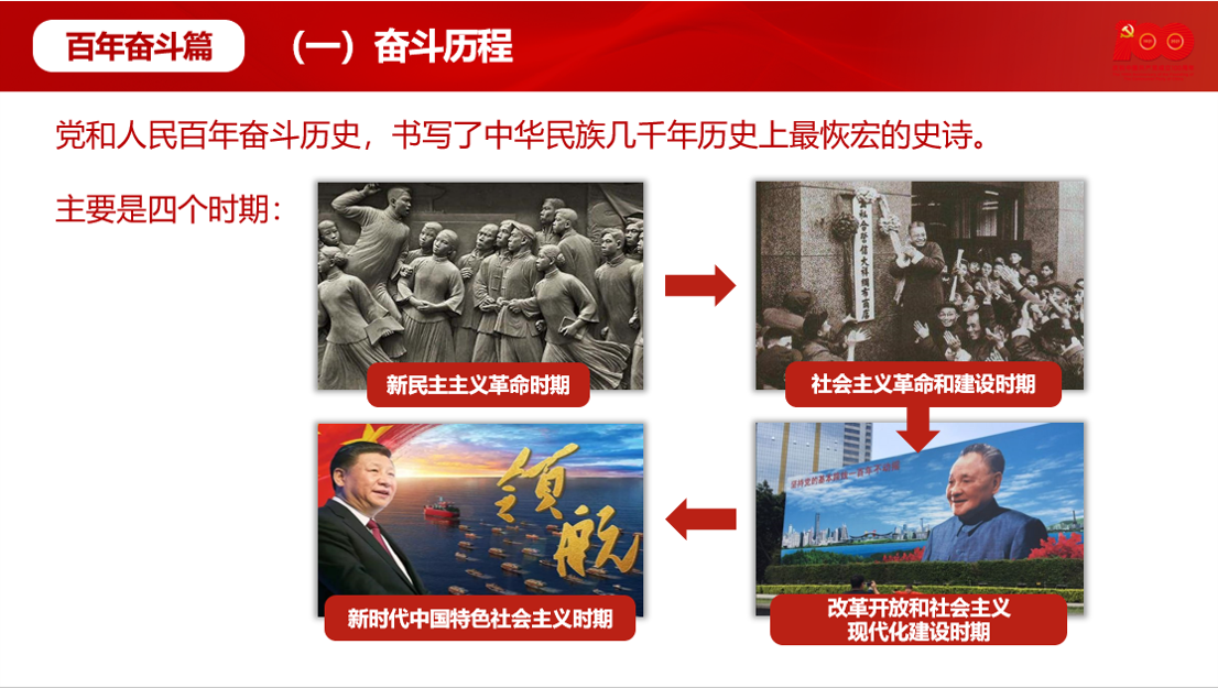 “党和人民百年奋斗历史,书写了中华民族几千年历史上最恢宏的史诗。”尉小旋介绍,是中国共产党创造了新民主主义革命、社会主义革命和建设、改革开放和社会主义现代化建设和新时代中国特色社会主义的伟大成就,她从根本上改变了中国人民的前途命运,开辟了实现中华民族伟大复兴的正确道路,展示了马克思主义的强大生命力,深刻影响了世界历史进程,锻造了走在时代前列的中国共产党。
