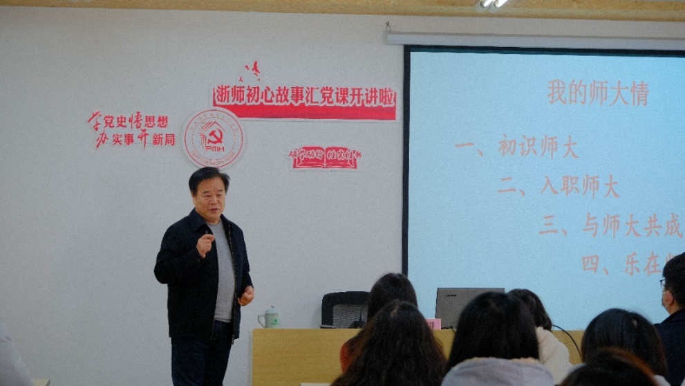 为深入学习十九届五中全会精神,丰富党史学习教育形式,坚持党史学习教育走深走实,12月8日下午,学院党委在17幢623会议室举办了“浙师初心故事汇开讲啦”活动。本次活动由原地理系主任吕惠进教授主讲。