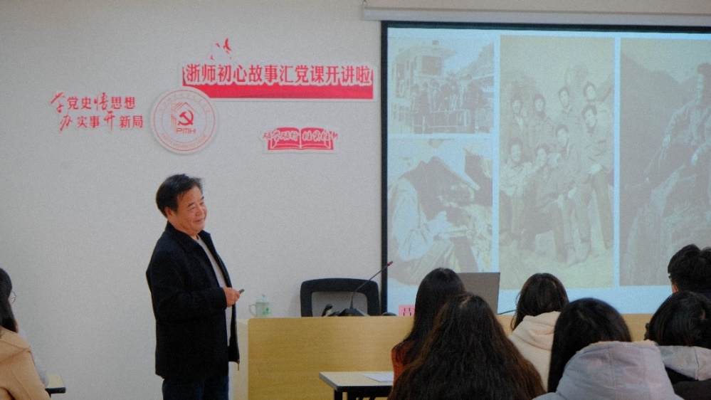 吕惠进教授通过讲述自己与浙师的情缘,在浙师生活、成长的的初心故事,向在场的同学们传达了一名老党员的奋斗精神,一名教育工作者的教育情怀,在场的同学深感振奋,在交流分享中表达作为一名浙师学子,将接续奋斗讲好自己的浙师初心故事。