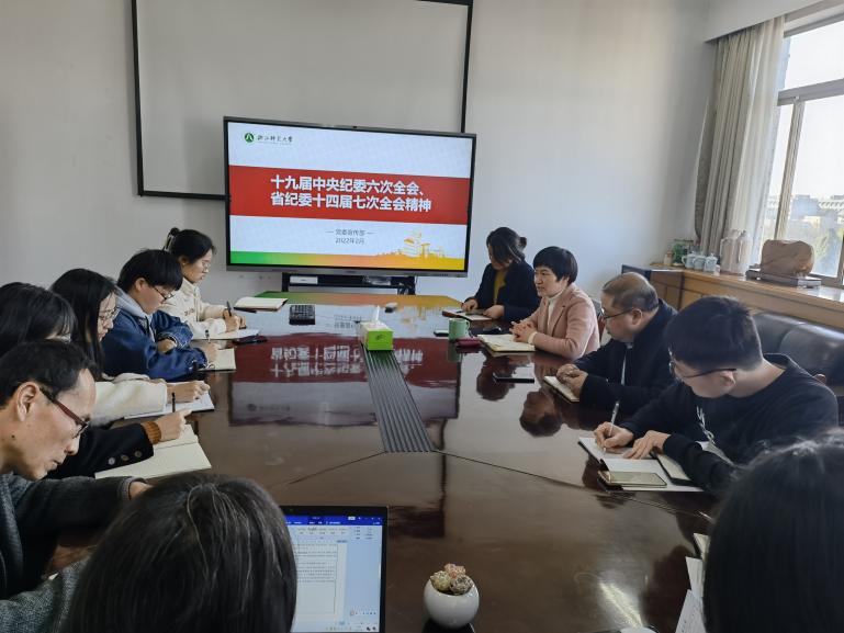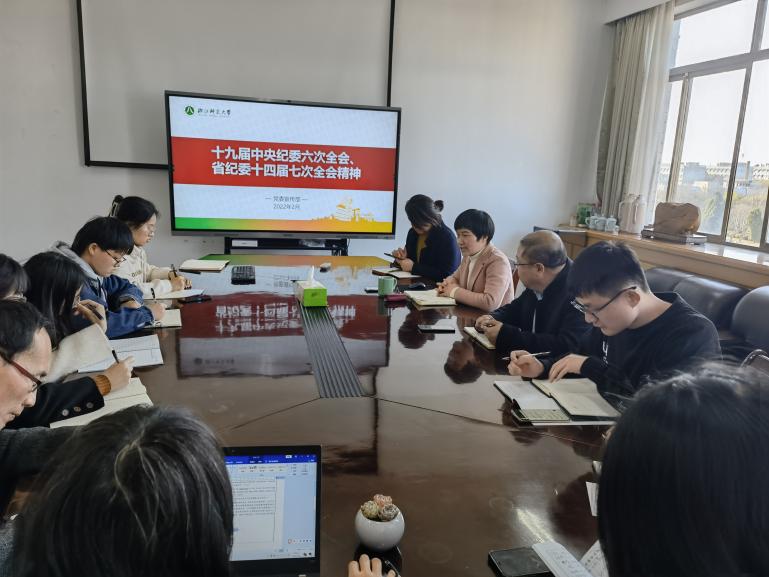 3月9日下午,学院党委理论中心组召开会议,专题学习十九届中央纪委六次全会及省纪委十四届七次全会精神。学院党委理论中心组成员、师生党支部书记参加会议。会议由院党委副书记谢枝文主持。