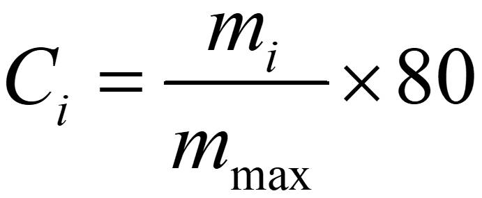 ①各参赛队模型(i)在各加载阶段的承载能力mi,按式(1)计算: