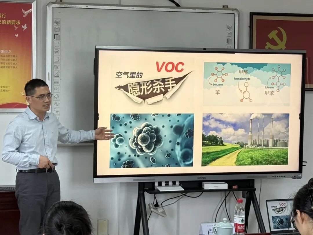针对“为何必须发展自主技术”这一命题,卢建杭博士强调监测设备自主可控关乎国家环境数据安全。浙江埃泰克环境科技有限公司通过“产学研用”协同模式,联合国内多家院校共同助力国产大气监测设备研发,突破国外企业惰硅镀层“卡脖子”技术封锁,团队现已形成大气环境监测设备的研发、生产和服务全链条国产化解决方案。“为国造精仪,为民做利器”。讲座尾声,他提出当前VOCs采样分析设备镀膜技术中仍待攻克的难点,呼吁有志学生投身高精尖仪器设备的研发。