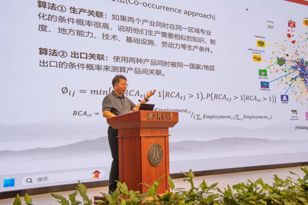 随后,贺教授从理论层面出发,阐释了地理邻近性的作用,重点强调认知邻近是知识溢出的关键条件——企业或个人若共享相似的知识基础与技术,更容易实现有效信息的传递与创新合作。他进一步将这一逻辑扩展为“关联法则”,即企业或区域在进入或退出某项经济活动时,往往沿着与现有经济活动存在技术或知识关联的方向进行相关多元化发展,从而降低创新风险和成本。贺教授指出,技术关联度越高,产业进入的概率越大,退出的概率越小,区域产业进入与退出均呈现显著的路径依赖特征。为量化“关联性”,贺教授介绍了三种主要测度方法,并指出发达地区应围绕核心产业延伸相关链条以防止同质化风险,欠发达地区则应优先培育与现有产业联系较少但技术关联较强的产业,实现路径突破和竞争力提升。同时,应通过打造产业集群、延长产**、培育区域商业网络以及优化制度环境来支持多元化发展,核心是立足区域的知识与技术基础。