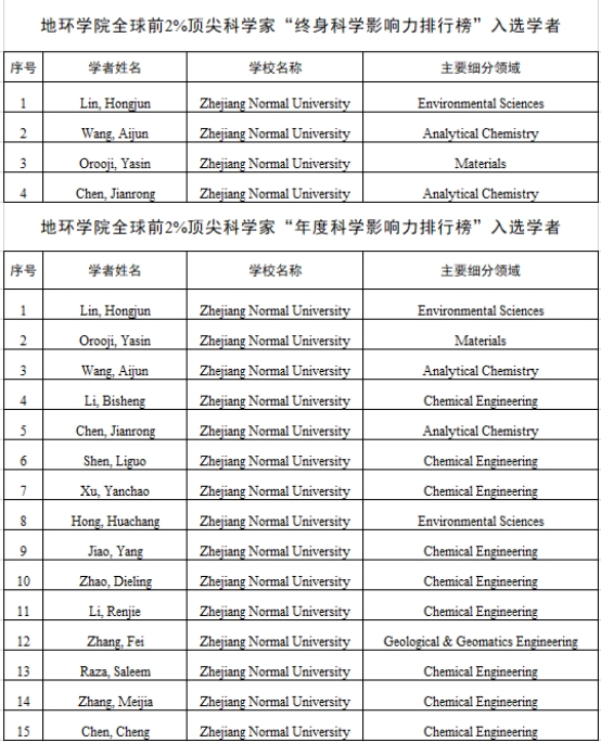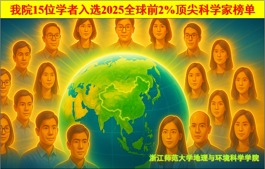 2025年9月19日,美国斯坦福大学联合爱思唯尔数据库(Elsevier Data Repository)发布了2025年斯坦福全球前2%顶尖科学家榜单(World’s Top 2% Scientists)。该榜单基于Scopus数据库中的引用数据,采用包括被引频次(区分自引与他引,并单独提供自引数据)、H指数、HM因子等在内的六种综合指标(composite score,C-score),分别从“终身科学影响力”和“年度科学影响力”两个维度,对全球近700万名科学家进行系统评估,遴选出各领域排名前2%的学者,浙江师范大学地理与环境科学学院(我院)15位学者入选该榜单。林红军、王爱军、陈建荣和亚鑫荣登“终身科学影响力”榜单,林红军、王爱军、陈建荣、亚鑫,李必胜、申利国、徐艳超、洪华嫦、焦杨、赵蝶玲、李仁杰、张飞、Saleem Raza、张媚佳、陈成入选“年度科学影响力”榜单。
