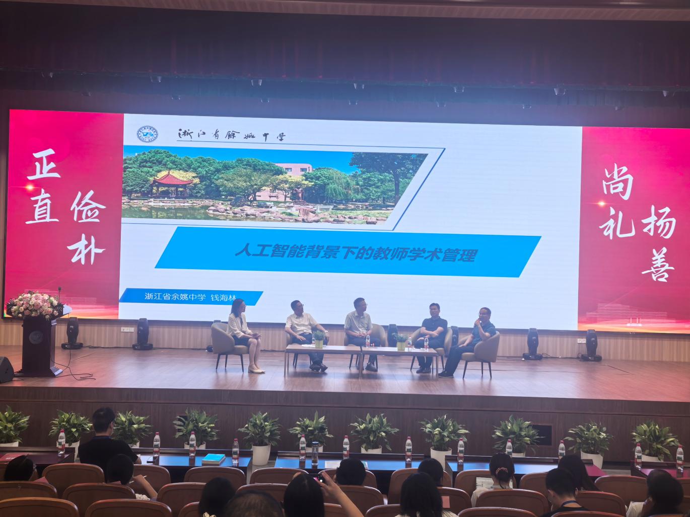 9:30,浙江省中学地理教学分会副会长兼秘书长、省教育厅教研室高中部主任郭剑峰教授作“人工智能赋能地理教学——核心素养引领课堂创新”专题讲座。他结合AI在地理情境创设、复杂地理过程模拟、个性化学习推送等方面的应用案例,深入解读如何利用智能技术突破传统教学局限,实现地理核心素养(区域认知、综合思维、地理实践力、人地协调观)的深度培育,为参会者打开“AI+地理教育”的新视野。