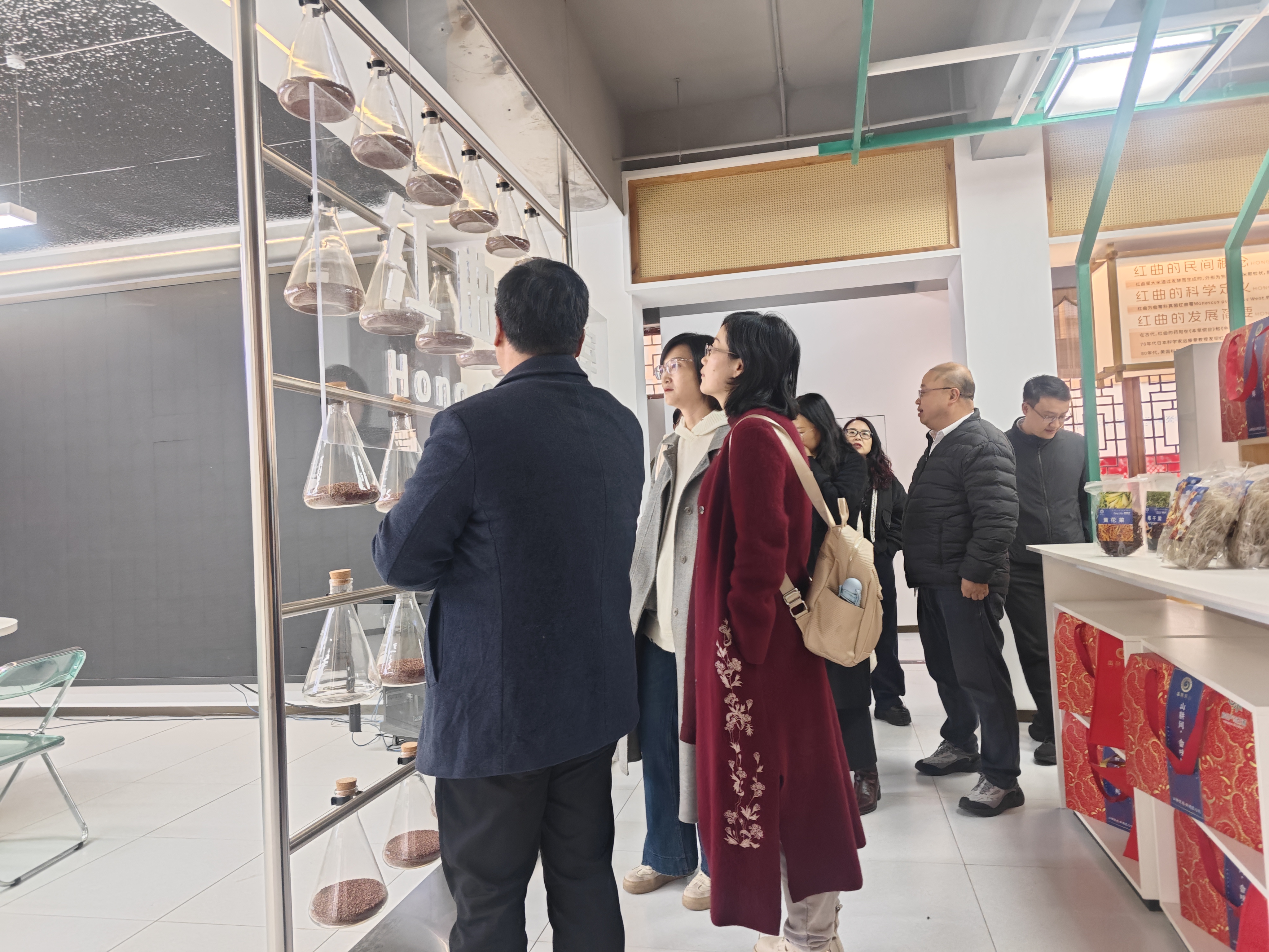 随后,调研一行前往畲族乡龙峰村,实地调研龙峰村民宿共同体运营模式与发展建设成效。龙峰村党总支委员钟余泉热情接待来访一行,全程陪同并详细介绍村庄通过“民宿联盟+文化赋能”实现共富的创新实践。龙峰村曾是莪山乡经营性收入最薄弱的村庄之一,其破局之道在于发展“红曲酒”这一传统产业。自2016年起连续举办“开酒节”,通过酒文化展示、畲族文化表演(穿畲衣、唱畲歌、跳畲舞等活动),逐步提升村庄知名度。在此基础上,龙峰村成立“民宿共富联盟”,通过整合民宿资源,制定统一卫生标准,推行“一户一品”特色化发展,形成“一家满客、多家联动”的共赢格局。调研双方围绕优势资源与未来合作方向进行深入交流,并就共同探索“民族特色+共富共美”的发展路径达成重要共识。