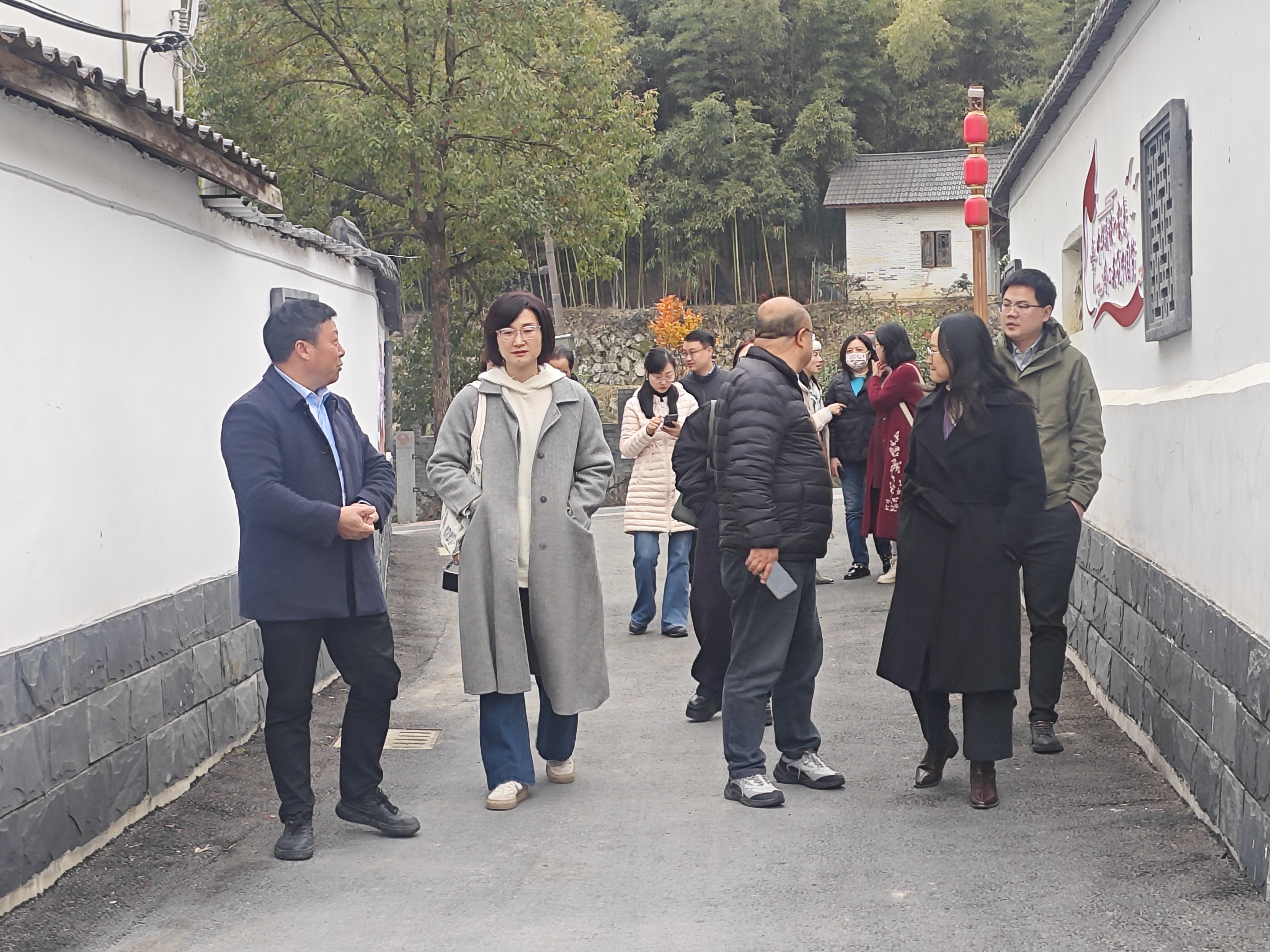 12月13日,调研一行先后来到山阴坞村及塘联村,通过参观民国建筑——李式花厅(李氏宗祠)、实地走访牛头山登山旅游游步道等地,深入调研当地历史文化保护与乡村旅游融合发展情况。